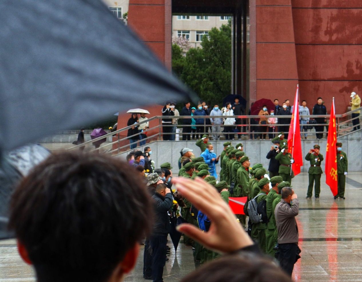 在西安烈士陵园,庄严的国歌声响起。家国又清明,鲜花献英烈。一百余位动能青年手持菊花,站在烈士纪念碑前进行缅怀仪式,集体向烈士默哀一分钟,随后全体人员有序向革命烈士敬献花束。