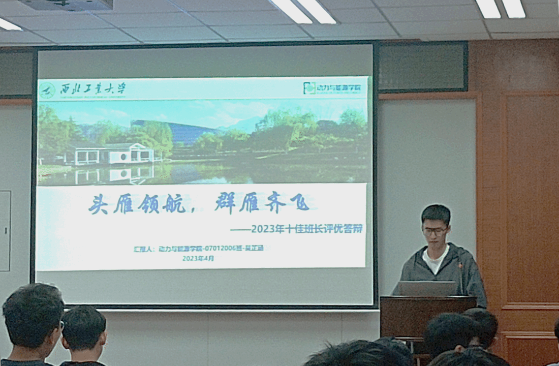 会议第一部分,两位学长、学姐以各自评优答辩材料为基础,向各位与会同学分享班级、团支部在发展建设中取得的成就和获得的经验,介绍他们的“班委观”和“班级建设方法论”。