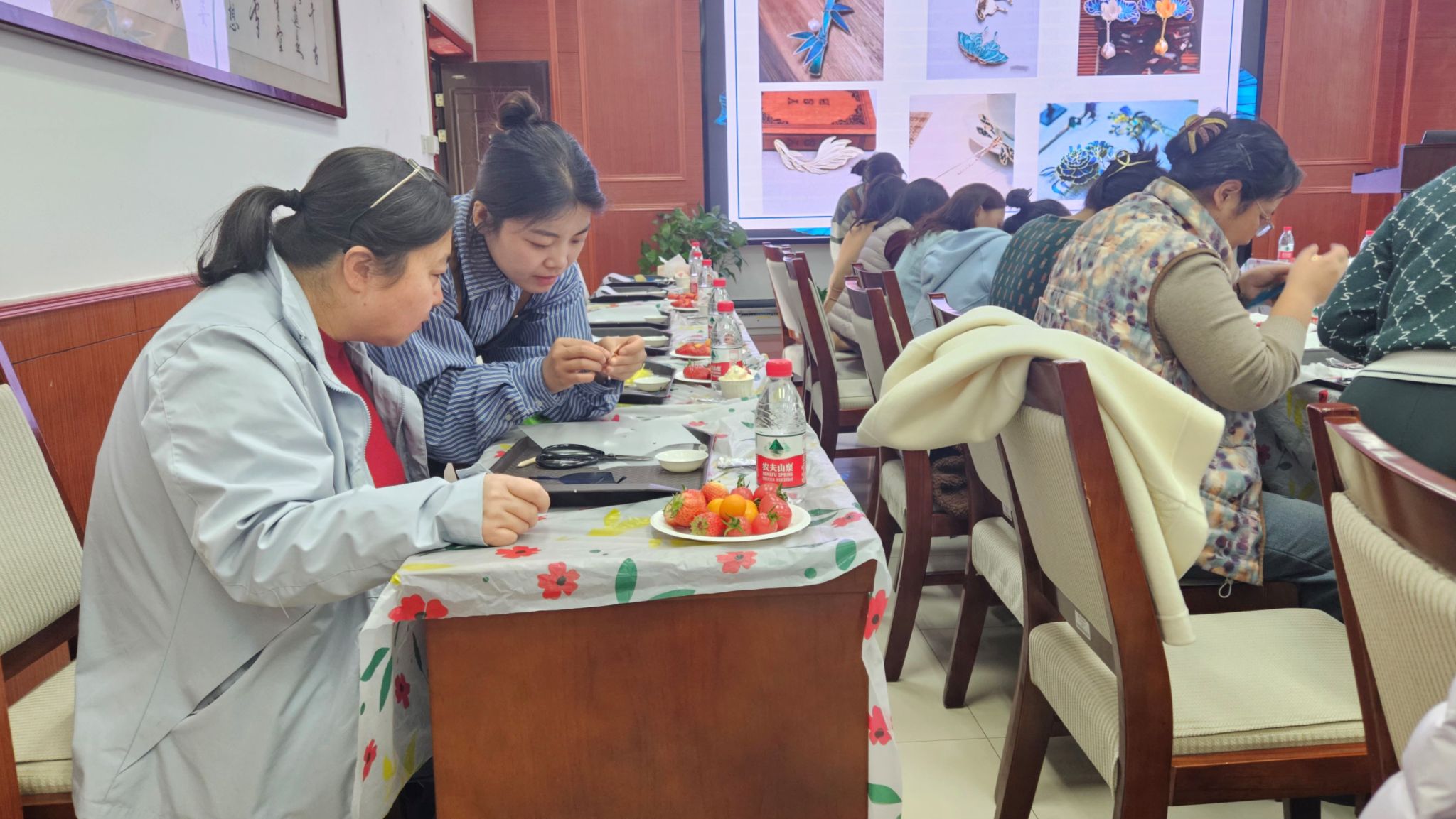 党委书记王占学在活动中表示:“希望以非遗文化体验为载体,让女性教职工在忙碌工作之余感受艺术疗愈的力量,同时增强文化自信,展现新时代女性智慧与优雅并重的风采。”活动现场还设置了作品展示环节,教师们互相欣赏创意成果,欢声笑语中洋溢着节日的温暖与活力。