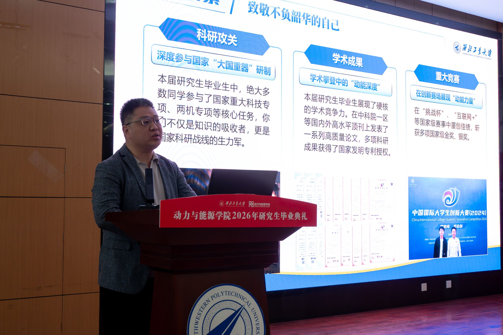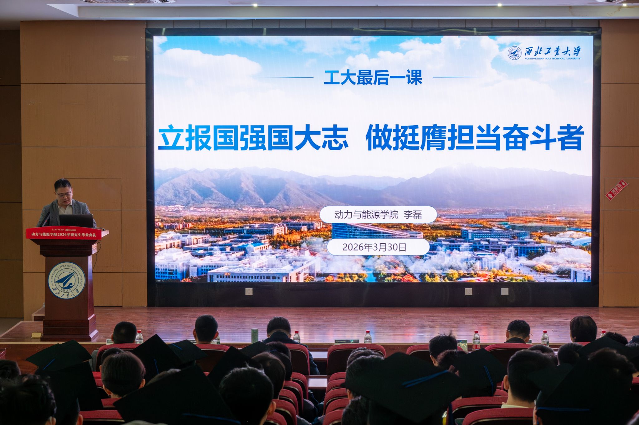 党委书记李磊主讲,旨在引导毕业生坚定理想信念、厚植家国情怀,传承西工大“总师育人文化”。