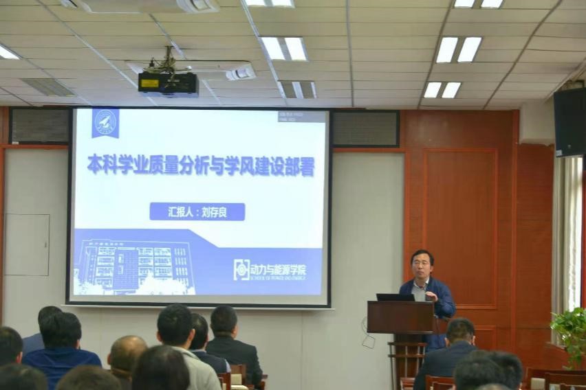 学风建设,推动教学管理与学生管理工作科学规范运行,教学副院长刘存良为全院教职员工作了题为《本科学业质量分析与学风建设部署》的报告。参加本次学风建设大会的人员有全体院领导和全院教职工,会议由闫育周书记主持。