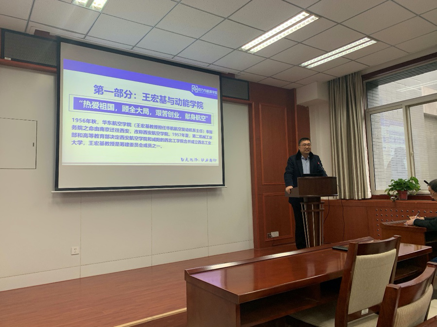 的发展历史、科学研究方向,指出当下航空发动机行业所面临的历史性机遇和巨大挑战;然后,从“十四五”规划纲要中对强化国家战略科技力量和激发人才创新活力两方面对航空发动机未来进行展望,号召青年教师要始终坚持服务国家重大战略需求规划未来的职业生涯;最后,要求全体青年教师传承和发扬“热爱祖国,顾全大局,艰苦创业,献身航空”的伟大精神,努力将“宏基班”打造成航空动力杰出人才培养基地,给青年教师上了一堂具有航发特色和航发人情怀的思政课,全体青年教师备受鼓舞。