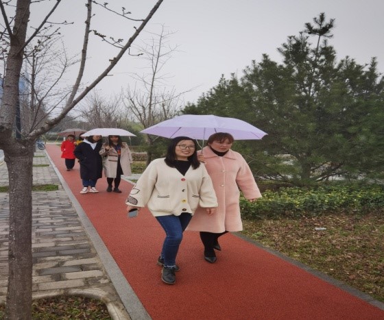 楼出发,一路向南,来到启翔湖,行走在春色满园的校园里,成为一道靓丽的风景线。一路上,女同志们用脚步丈量健康,边走边拍,用照片记录春意……大家陶醉在这醉美春色里,不时发出笑语盈盈,既释放了工作压力,也愉悦了身心。