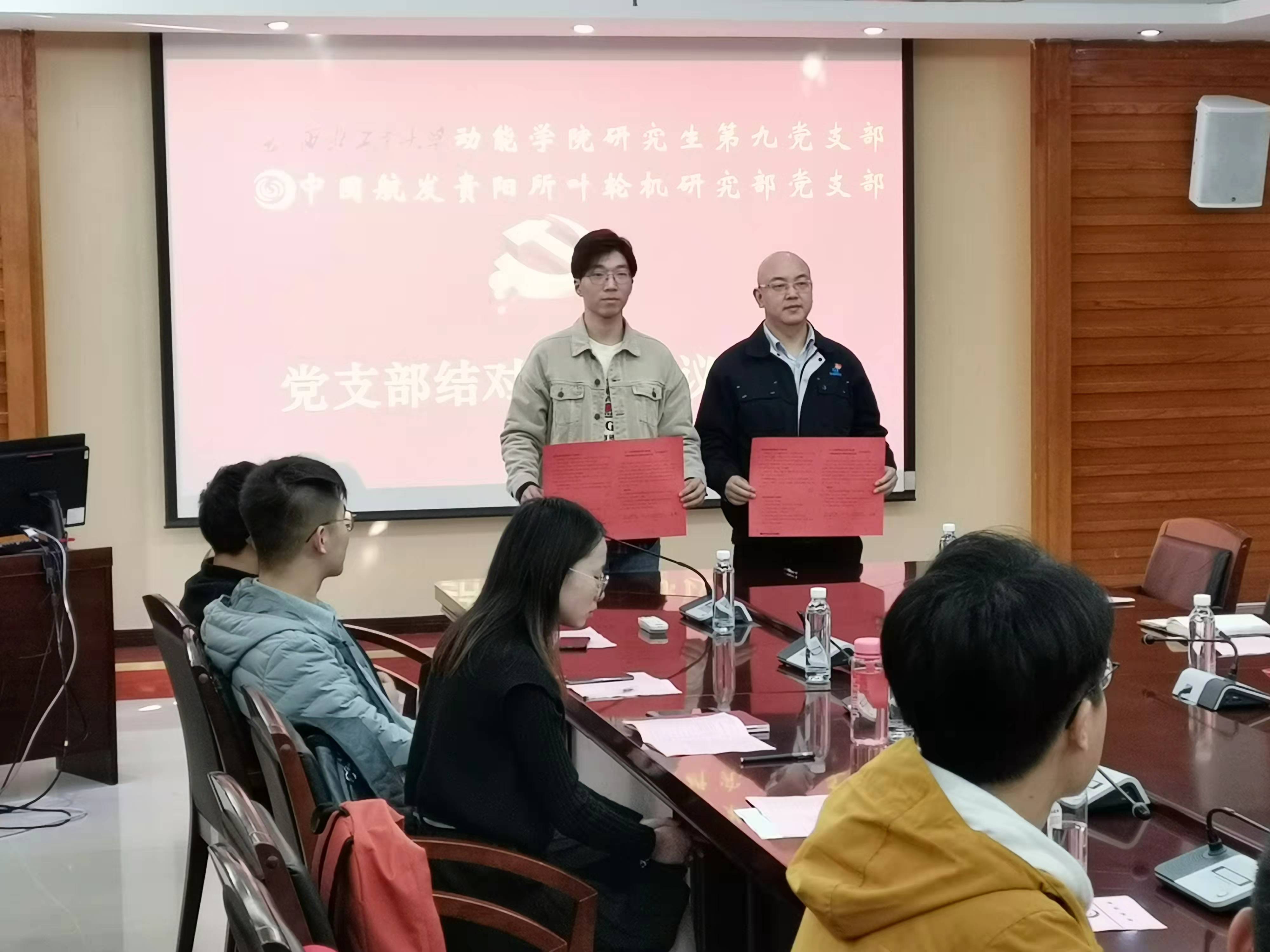 研究生第九党支部于贵阳所第一会议室进行了支部共建的启动仪式。贵阳所人力资源部部长马岚同志首先对贵阳航空发动机研究所的发展概况和行业现状进行了介绍,让同学们对研究所的历史发展和工作内容有了较为全面的认识。随后,叶轮机研究部党支部书记赵熙同志与JavLibrary