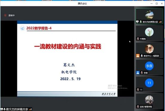 “机械原理”教材及课程建设的传承与创新、面向新工科课程教学深度改革与教材质量提升实践、关于本科一流教材建设的几点看法。授课最后,葛文杰教授与参会教师进行了热烈的交流和讨论。