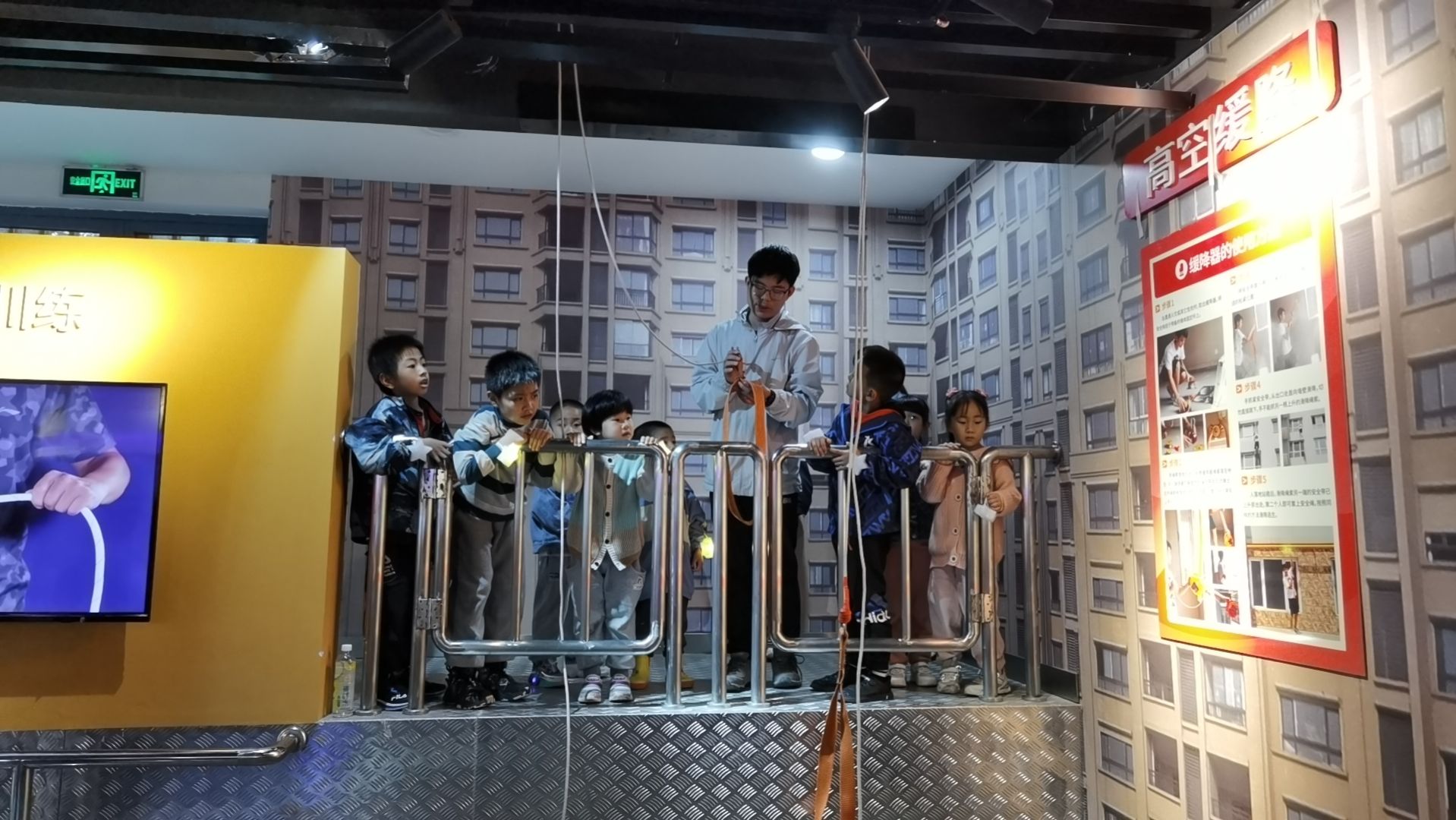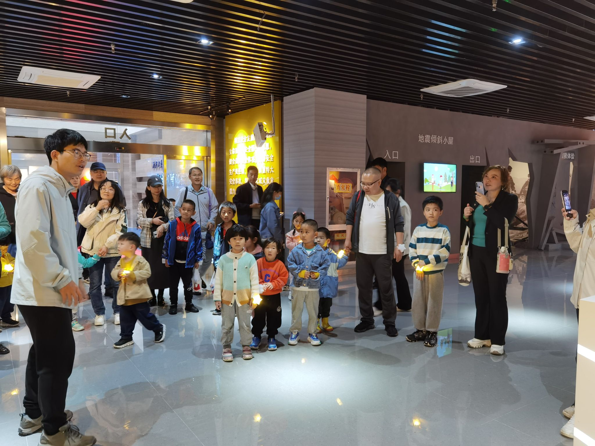 馆内有馆内六大展区,六大展区分别为自然灾害区、国家安全区、校园安全区、消防安全区、卫生健康区及交通安全区。讲解员带领小朋友们和家长们体验了电梯事故模拟器、火灾小屋、火灾现场逃生。安全火灾体验以及灭火器的使用等等安全设施的安全场景,从模拟的真实场景中教会小朋友在现实生活中应该如何避免安全事故的发生,在安全事故发生之后又该运用什么方法进行逃生。