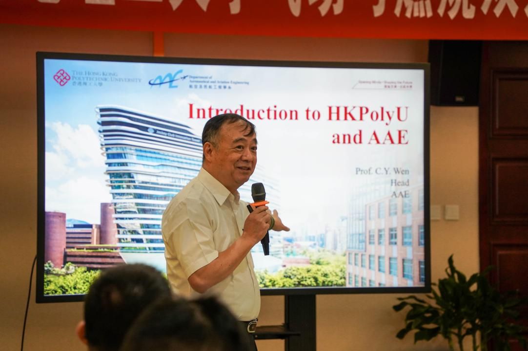 排名、科研中心及成果,并向大家详细介绍了香港理工大学航空及民航工程学系概况、历史、教职工与学生人数及科研中心等情况。