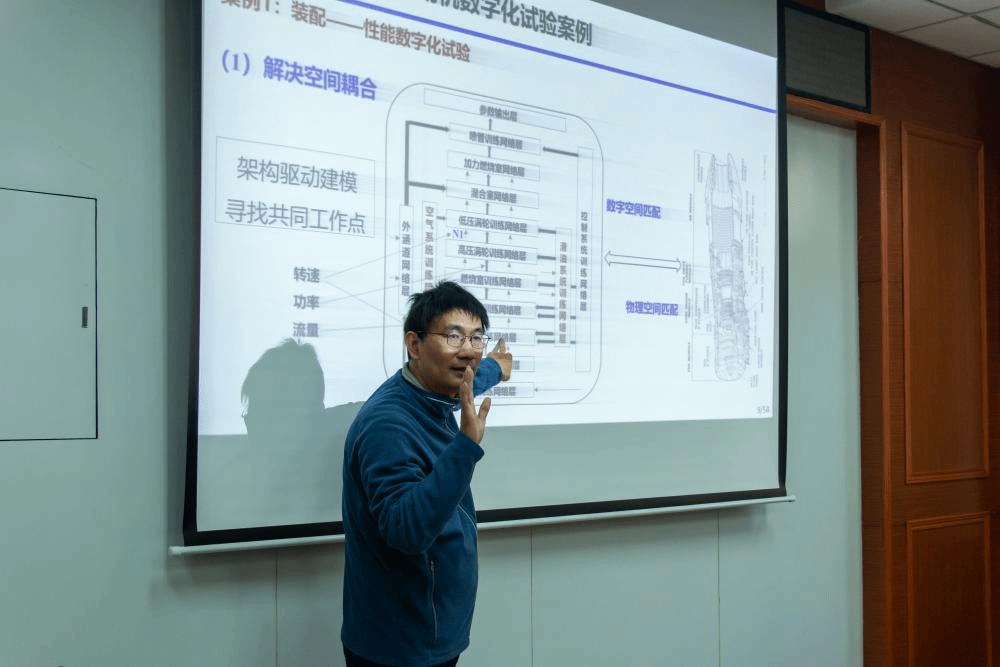 邀请优秀中青年教师肖洪教授结合发动机智能化技术以及近年来与院所厂合作经验,开展了《航空发动机数字化试验》主题讲座。讲座由王可副院长主持,院长王占学和三十余位青年教师参加。