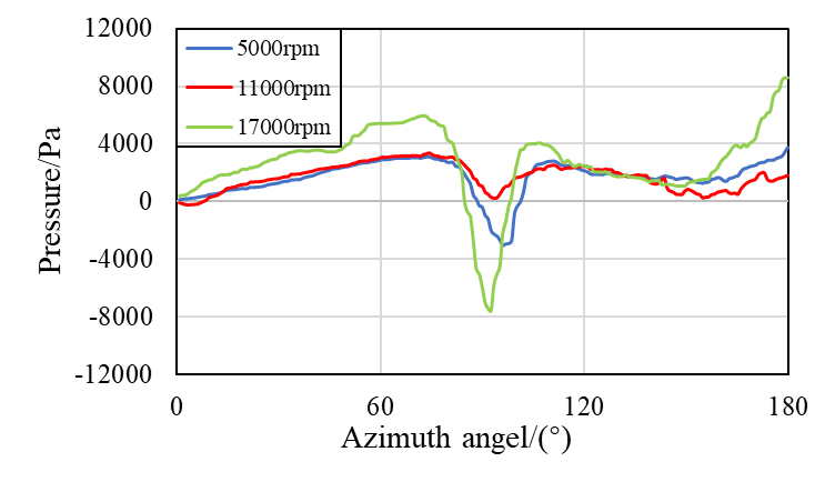 图4 不同转速下球体表面360°压力