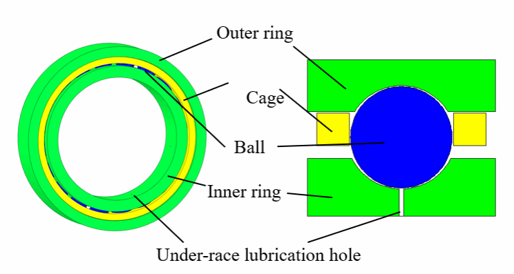 图1 环下润滑球轴承几何模型