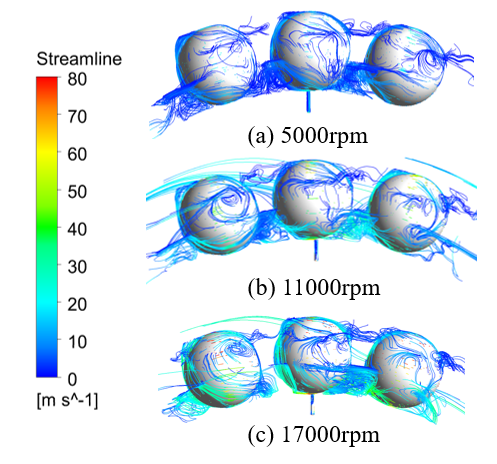 图2 不同轴承转速下流线图