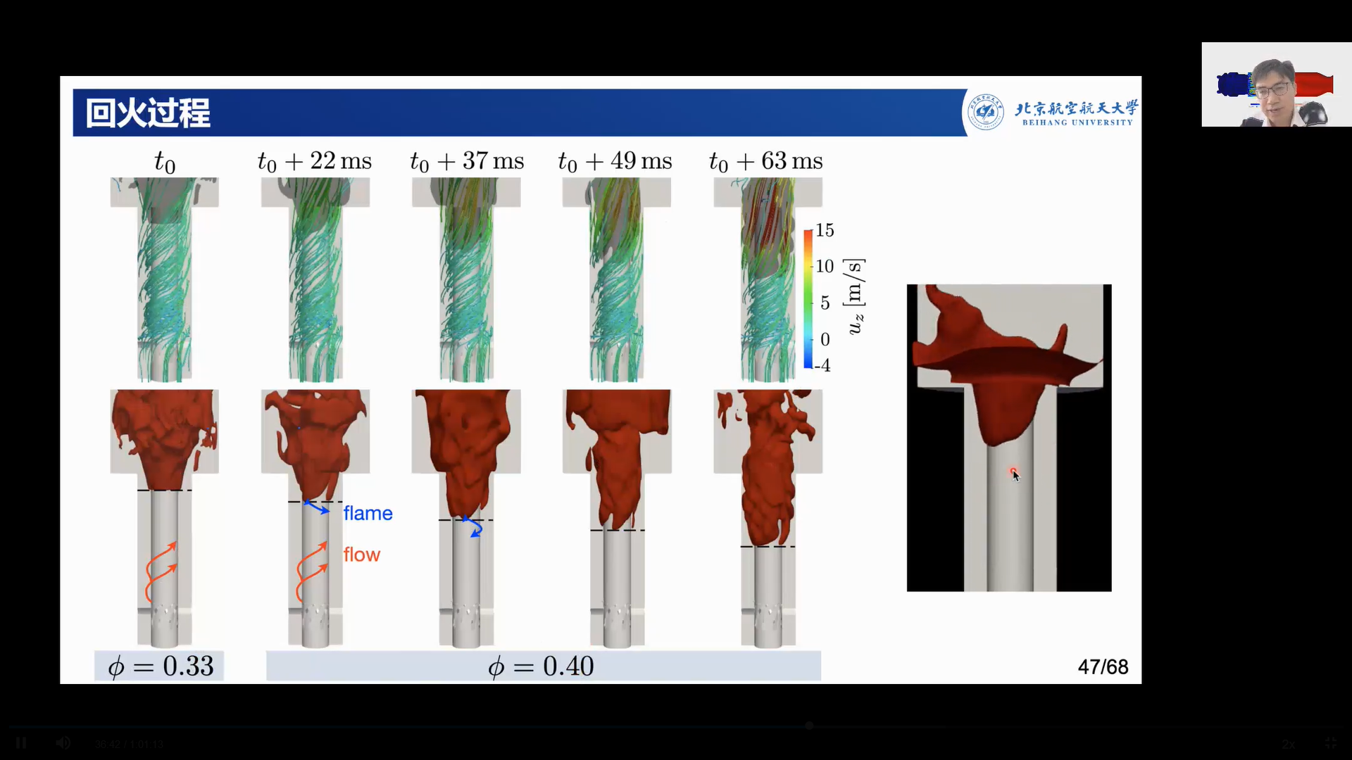 韩旺教授首先对航空发动机仿真软件的重要性和现状做了简单的介绍,并指出燃烧室中流动燃烧由于涉及多尺度湍流问题,方程多、刚性强、尺度广,湍流燃烧模型是通过数值仿真解决发动机问题的关键,然后从污染物的排放和燃烧稳定性两方面介绍了航空发动机关键问题。随后,韩旺教授按照模型发展、模型验证、模型应用的顺序对碳烟、污染物与回火、燃烧噪声这三个湍流燃烧模化问题进行详细的讲授。最后,韩旺教授与参会人员针对发动机湍流燃烧模化与关键问题研究等问题进行了热烈讨论。