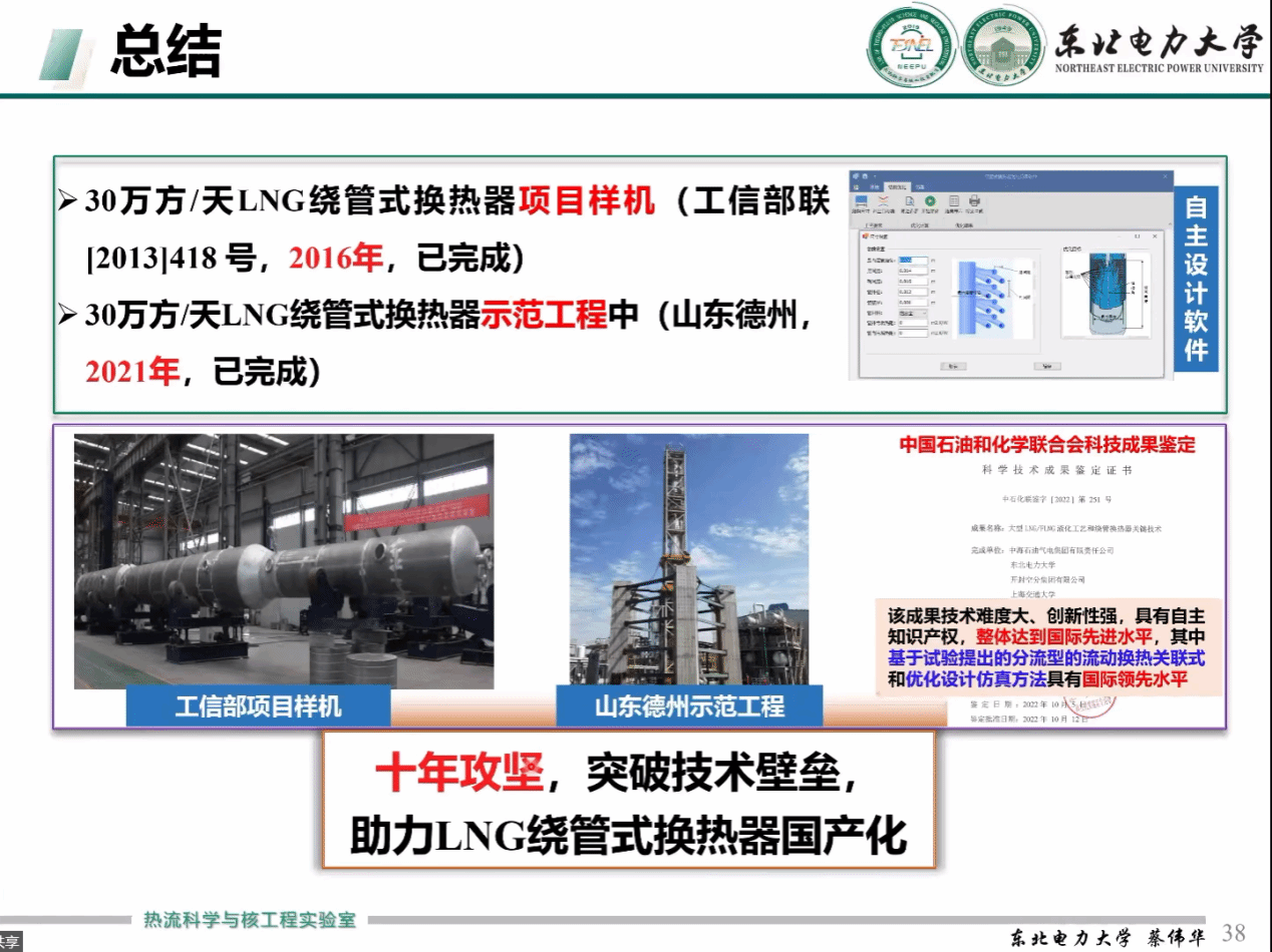 二、实验研究:针对自主研发的FLNG/LNG绕管式换热器在山东德州搭建LNG绕管式换热器示范工程试验平台进行验证;
