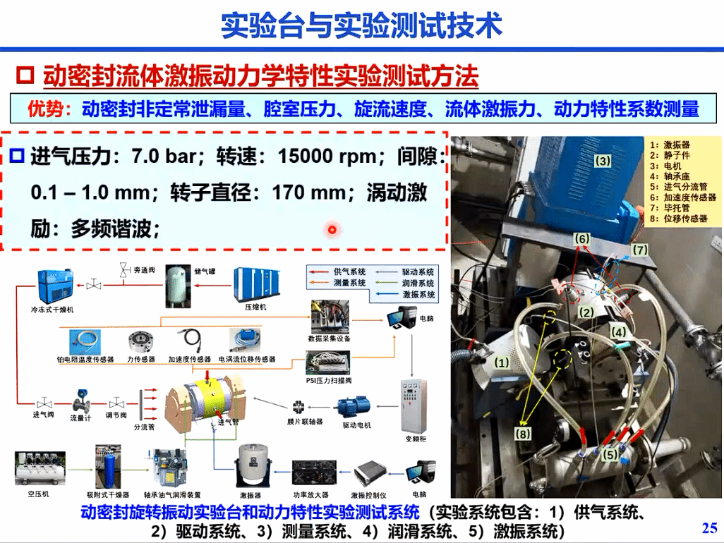 其次,李志刚教授及所在团队搭建了先进且完备的动密封流体激振动实验平台,该实验平台可针对动密封非定常泄漏量、腔室压力、旋流速度、流体激振力、动力特性系数同时进行测量。李志刚教授及所在团队利用该试验平台对预测进行校核和进一步完善,其预测结果与实验结果高度吻合。