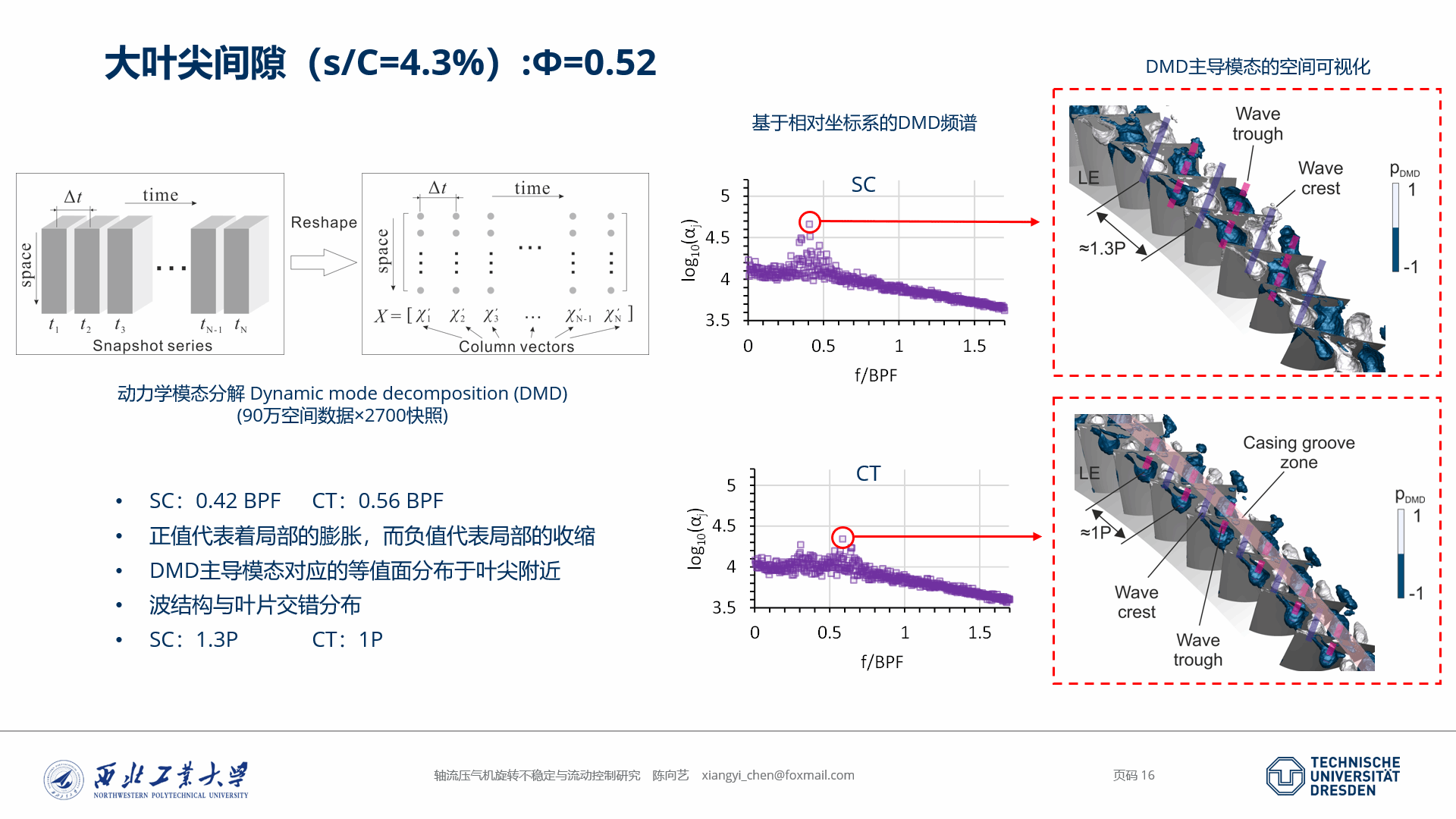 陈向艺博士首先介绍了旋转不稳定的概念及其存在所造成的问题。旋转不稳定性是一种在压气机到达失速边界之前就可能发生的气动不稳定现象,通常发生在转子具有大叶顶间隙的情况。它可能造成叶顶间隙噪声增强以及叶片的 非同步振动,为压气机的稳定和安全性能带来影响。