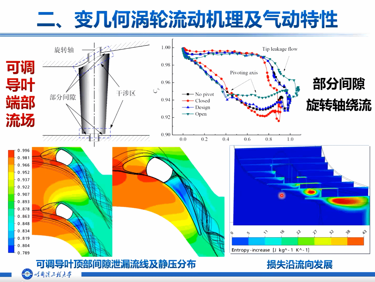 其次高杰教授分别对可调导叶不同级、导叶角度、不同转角进行试验研究,分析其流动机理和气动特性,同时根据各部件中流动特性,对涡轮采用不同优化设计方法进行优化。