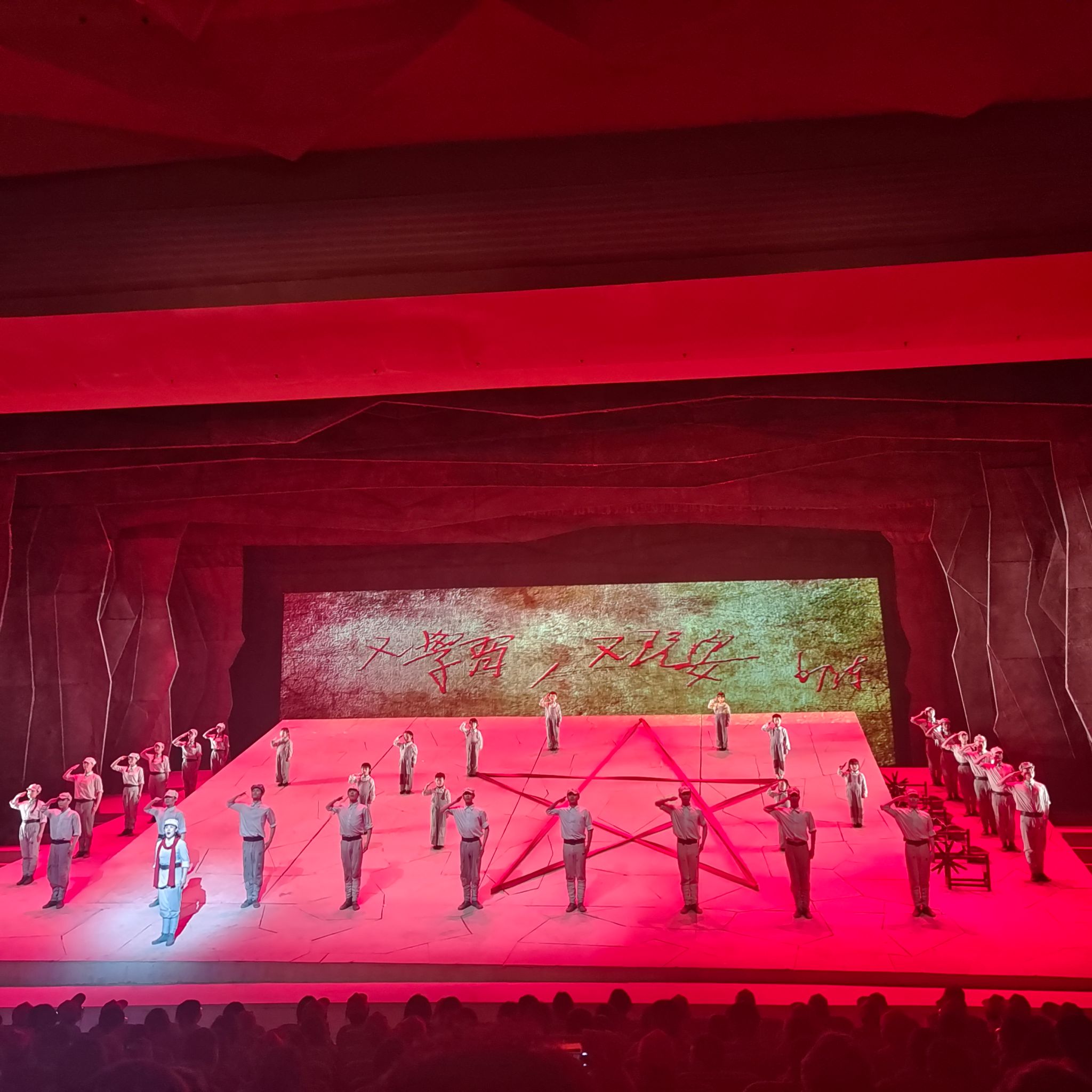 最后,师生们一齐来到延安大剧院,观看《延安保育院》。红色舞台剧完美的将历史与艺术相结合,在歌曲与舞剧的渲染熏陶下,讲述了上世纪延安保育院的院长为保护烈士遗孤,忍痛与自己的女儿分离,带领保育院其他老师躲避敌人、翻越黄河,并最终英勇牺牲的故事。同学们在舞台剧的艺术熏陶中,学习到了延安保育院烈士为人民、为祖国而英勇斗争、无私奉献的大无畏精神。