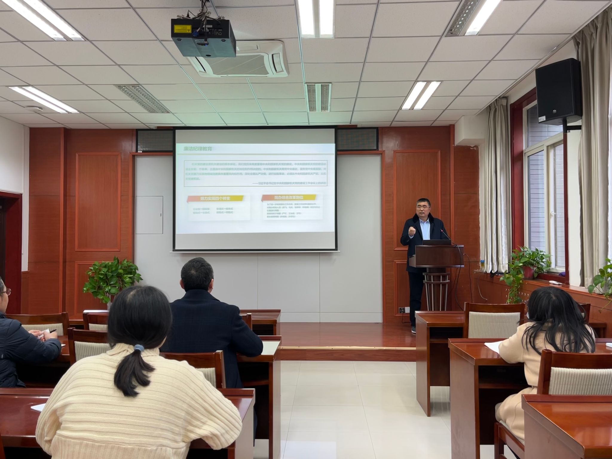 党委书记闫育周为机关党支部及全体院办同志讲授廉政专题党课。