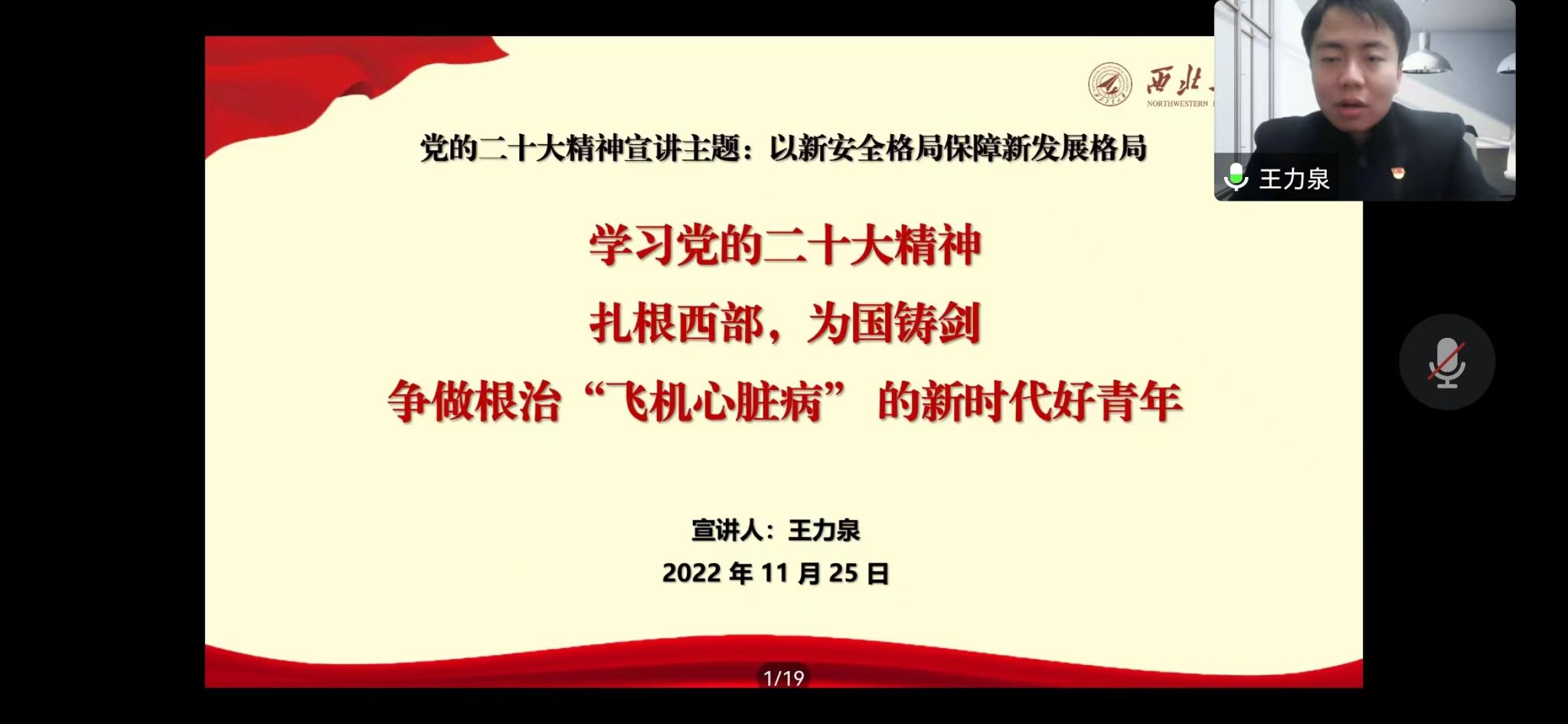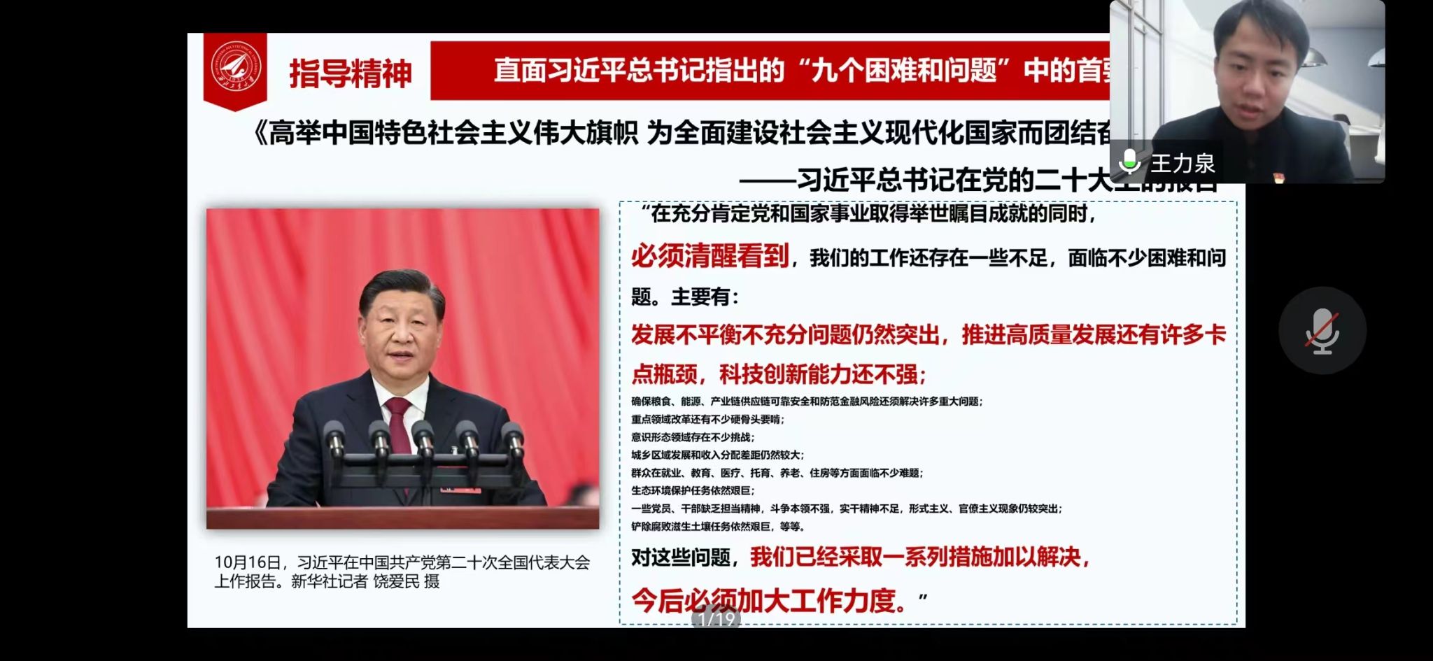 邀请工大青年宣讲团讲师王力泉宣讲党的二十大精神,会议采取线上方式,参加此次学习的有入党积极分子及发展对象共计220人。