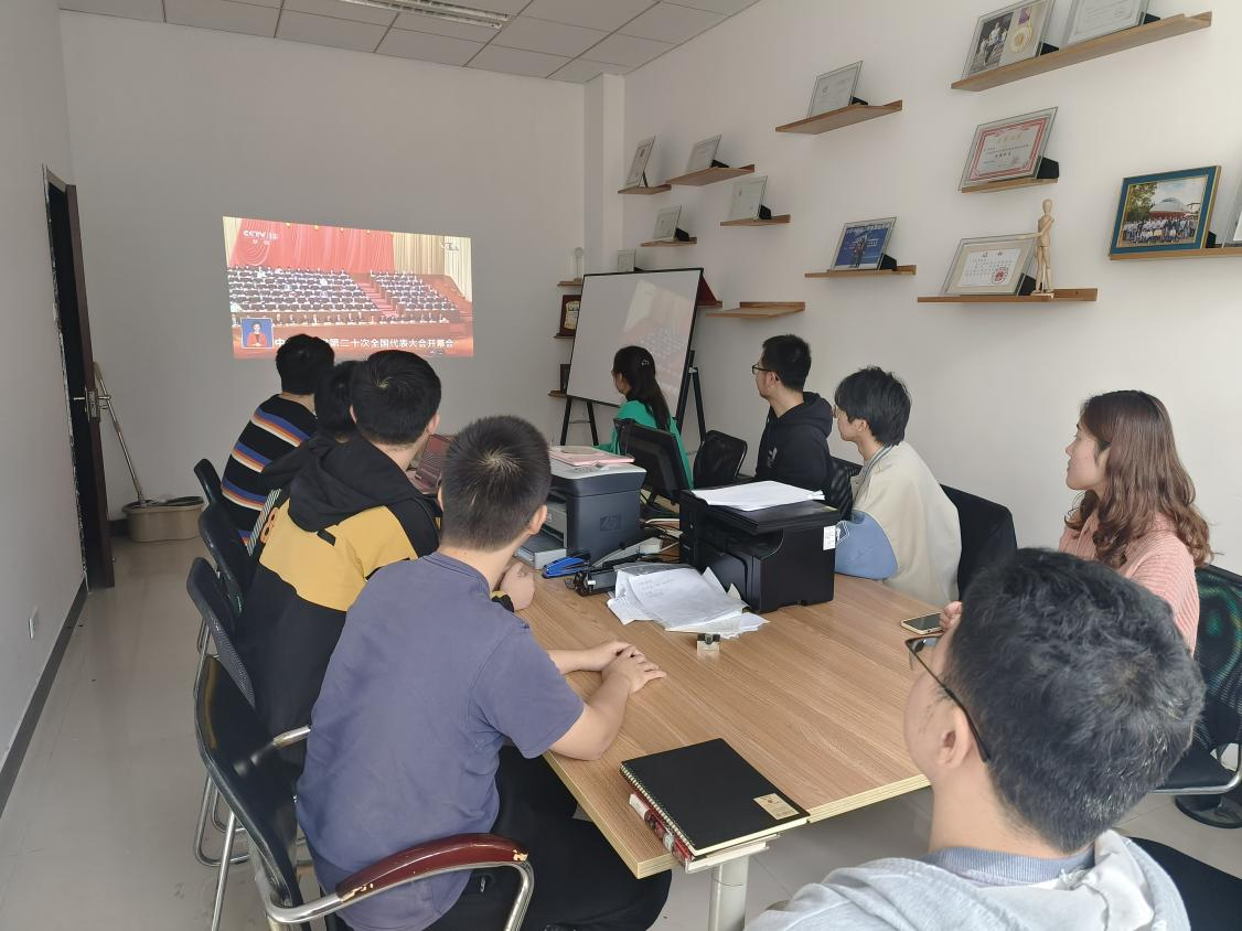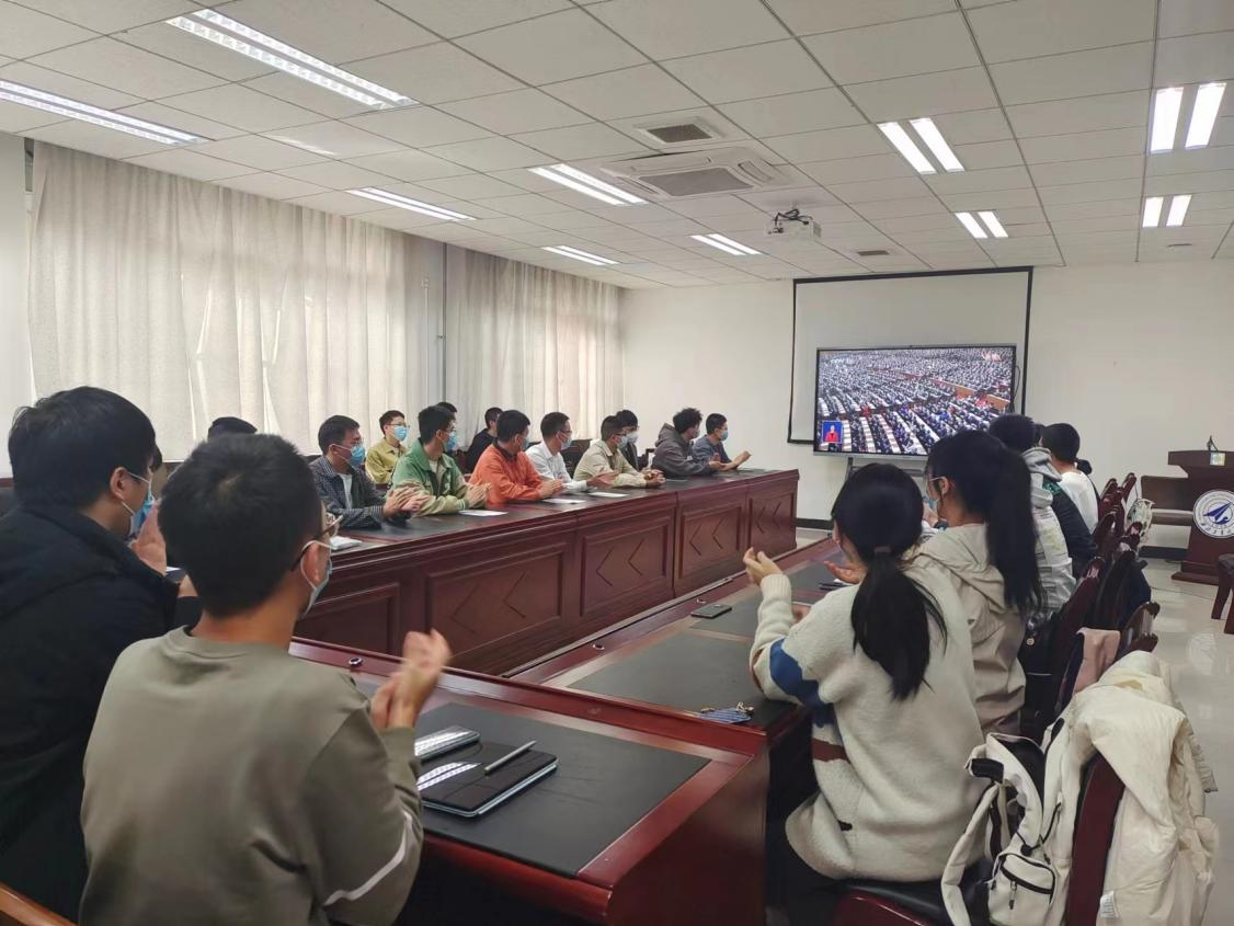 楼225会议室集中收看中国共产党第二十次全国代表大会开幕会实况。