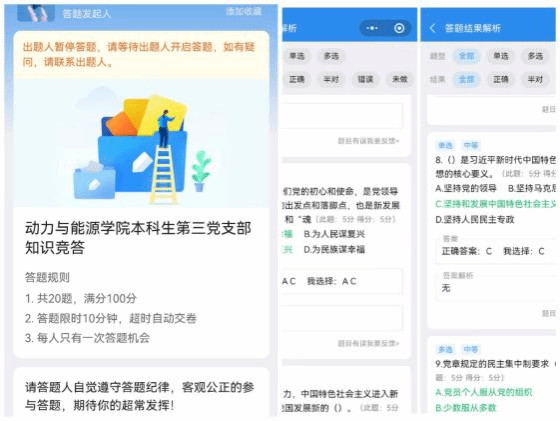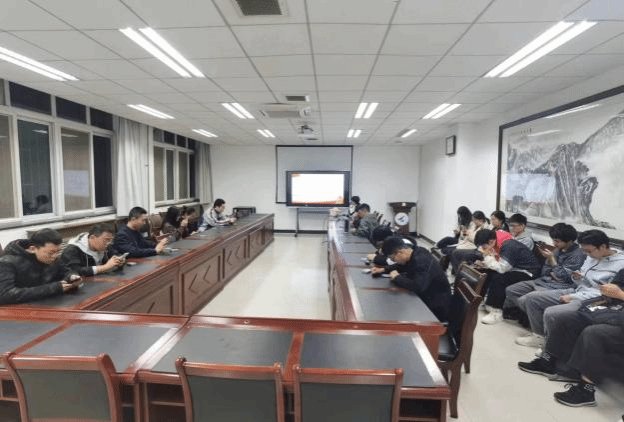 楼107会议室,宣传委员路培强首先为到会的22位党员介绍了本次知识竞赛的背景和目的,之后正式开始此次竞赛。本次竞赛创新的采用了“线下会议+云答题”的模式。线下会议,即大家聚在一起进行答题,方便赛后的沟通交流和总结,营造浓厚的学习氛围;云答题,党员们可通过扫码用手机答题,方便了成绩统计和答题情况分析。