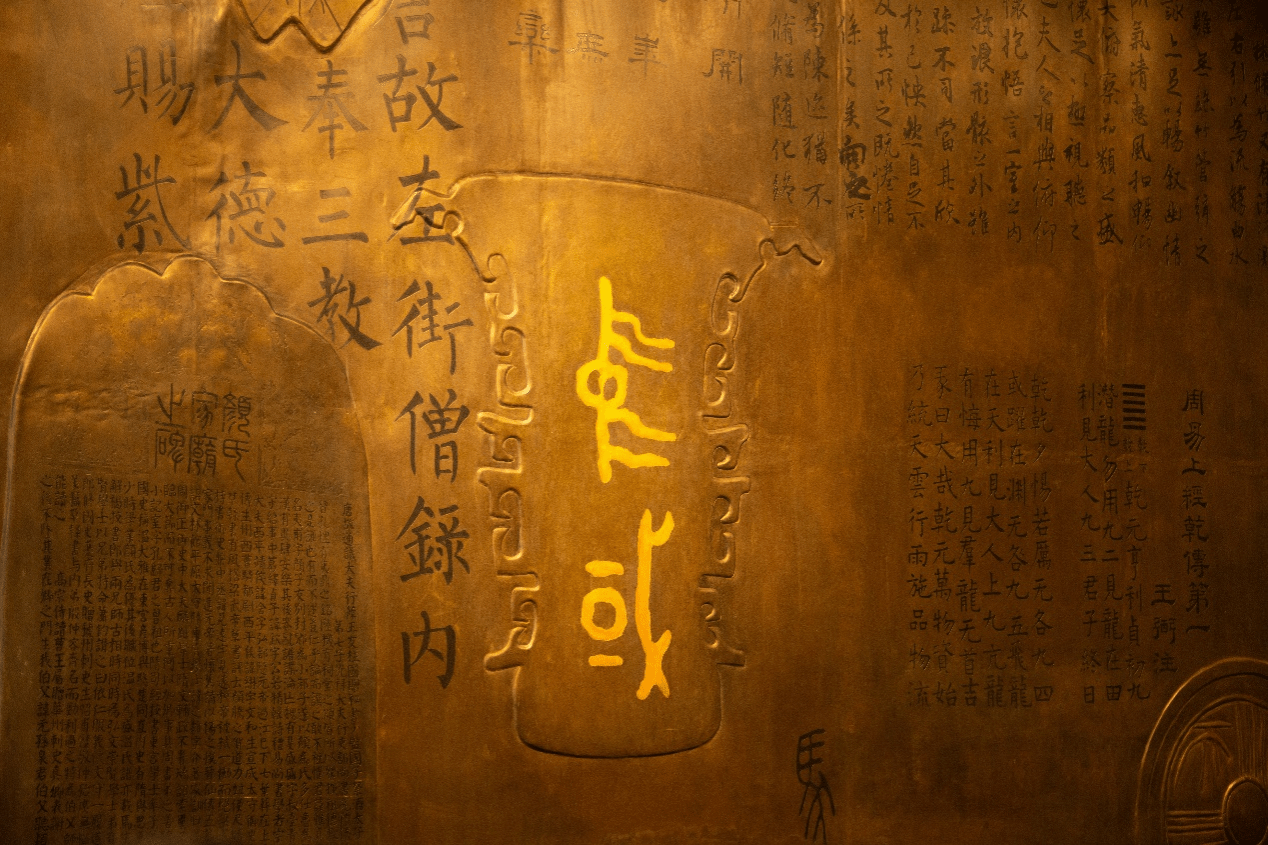 在参观《赓续文脉 踔厉前行》西部文化展时,同学们在青铜器何尊展柜前驻足,墙上的刻绘与校内何尊相互呼应,形成“何尊双壁”,跨越时空延续文脉‌。在青铜器的兽面纹与饕餮纹中,大家读懂了器物承载的礼制密码——从何尊铭文“宅兹中国”的庄严宣告,到商周酒器“尊卑有序”的形制规范,每一道纹路都在诉说先民“以器载道”的文明构建智慧。这场跨越时空的对话,从青铜的厚重“硬度”中提炼出文明延续的坚韧力量。商周匠人以滚烫铜汁浇铸礼制秩序,今日青年则怀揣敬畏守护文化原典,更以创新之力激活传统基因。正如铭文书写需“传遗后世子孙”‌。新时代的“何以中国”之问,正由我们以自信为锤、热爱为范,在青铜文明的脉络上镌刻时代答案‌。